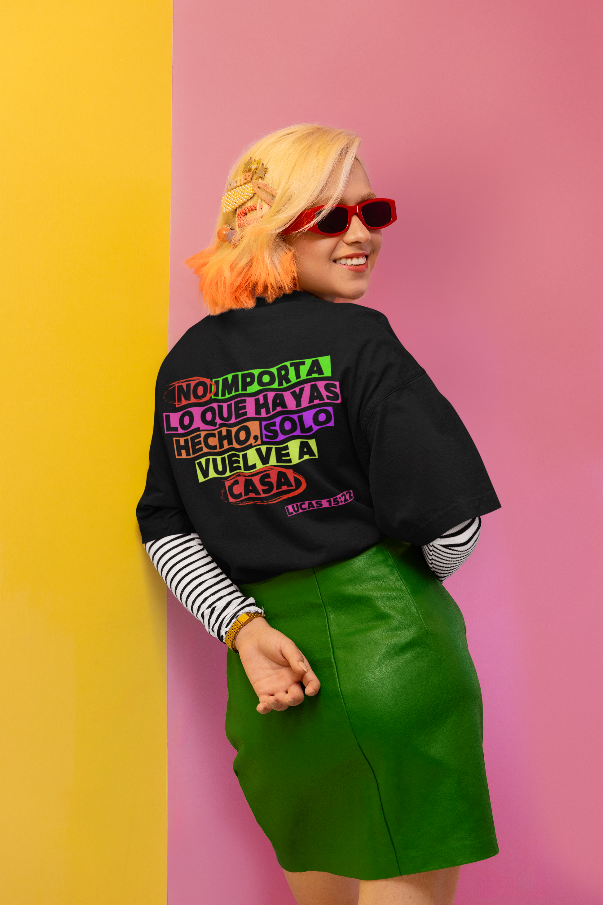Camiseta “Vuelve a casa” de Selah, confeccionada en 100% algodón premium, suave y resistente. Su estilo oversized y corte unisex ofrecen máxima comodidad y un look moderno.